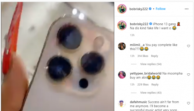 Controversial Nigerian cross dresser, Bobrisky, he has taken to his Instagram page to show off his recently acquired iPhone 13 Amid drags and backlashes that are being thrown at him.