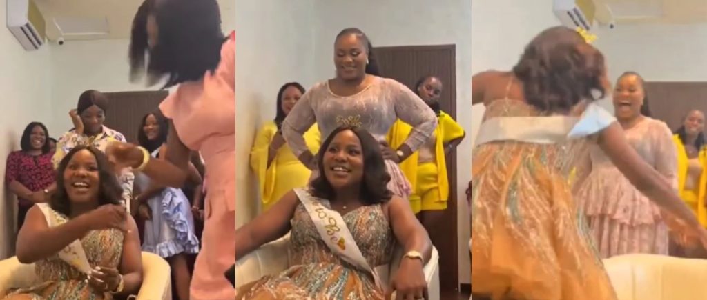 Overwhelmed with emotion, she leapt from her seat in excitement, creating a touching and unforgettable moment ahead of her wedding day.