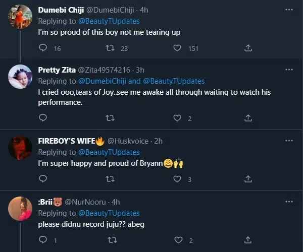 Fans of the reality TV star however, showered him with praise for his outstanding performance and support for Beauty.*