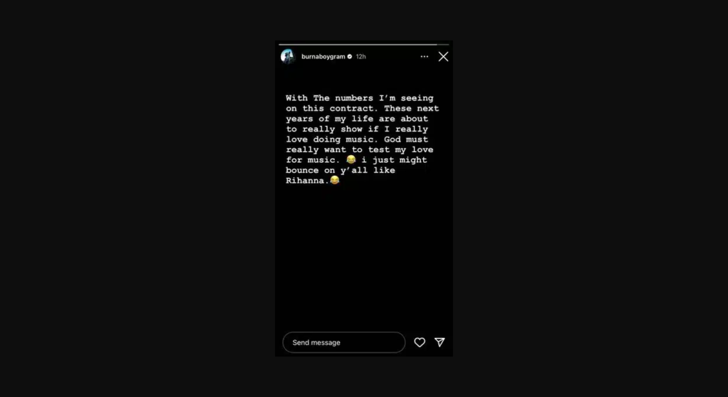 On Sunday, he said on his Instagram story, “With the numbers I’m seeing on this contract, the next years of my life are about to really show if I really love doing music.”