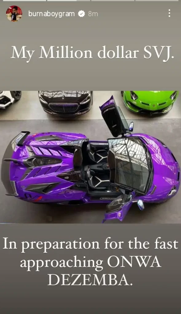 Burna Boy had acquired a purple Lamborghini.