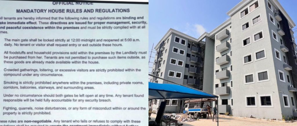 A landlord has sparked reactions after issuing a strict directive requiring tenants in his building to purchase all food and household provisions only from the landlady.