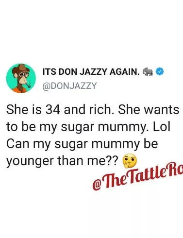 He tweeted; ”She is 34 and rich. She wants to be my sugar mummy. Lol can my sugar mummy be younger than me?”