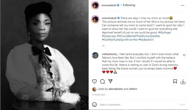 Popular actress, Omoni Oboli has reminisced on her mother’s death as she shares their look-alike photo.