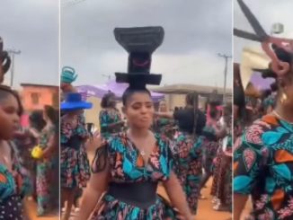 A Nigerian couple’s wedding reception descended into chaos after a disagreement over a male guest escalated into a public fight. The drama began when a young man from the neighborhood arrived during the dance, prompting
