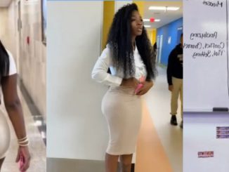 A teacher and fashion influencer, Ms. Williams — popularly known as “Teacher Bae” — has stirred controversy after posting videos of herself in what many described as provocative outfits within school premises. With over 134,000