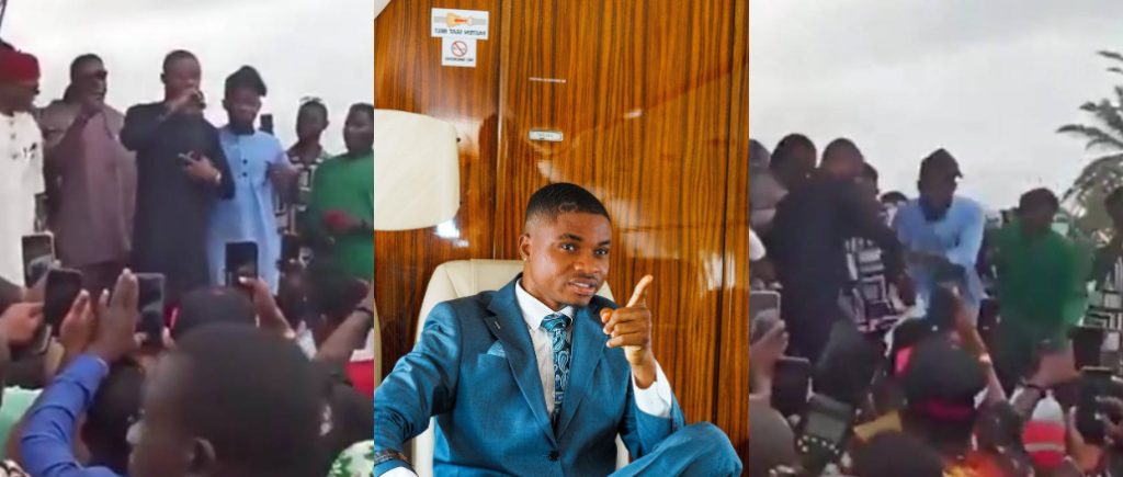 A shocking scene played out in Ohafia, Abia State, as popular influencer Ola of Lagos fell through a collapsing stage while addressing the crowd at a local event.