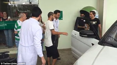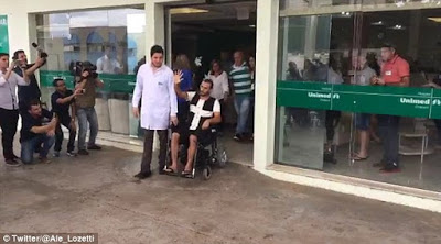 The Brazilian left back was seen leaving the Unimed hospital in Chapeco on Friday to cheers and applause from a waiting crowd, stepping out of his wheelchair before jumping into a car to depart. Ruschel is one of just six survivors of the plane crash that killed 71 people in Colombia last month. See another picture after the cut…