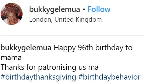 The photos were posted by BukkyGeleMua, a London Makeup Artist and Headgear Specialist. The makeup artist revealed that the old woman came to them for makeup in preparation for her 96th birthday celebration.