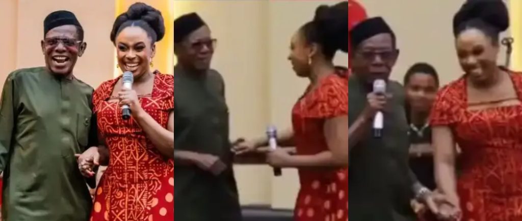 A viral video captured the heartwarming moment Chimamanda, while speaking on stage, spotted Osuofia and excitedly invited him up, calling him an icon. The two shared a hug as she expressed her admiration for him.