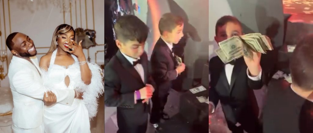 One of the highlights that caught attention was the couple’s young white groomsmen. In a viral video from the after-party, the boys, dressed in sleek black suits, were seen joyfully gathering dollar bills from the floor. Beaming with excitement, they proudly showed off their cash to the camera, adding a playful touch to the lavish occasion.