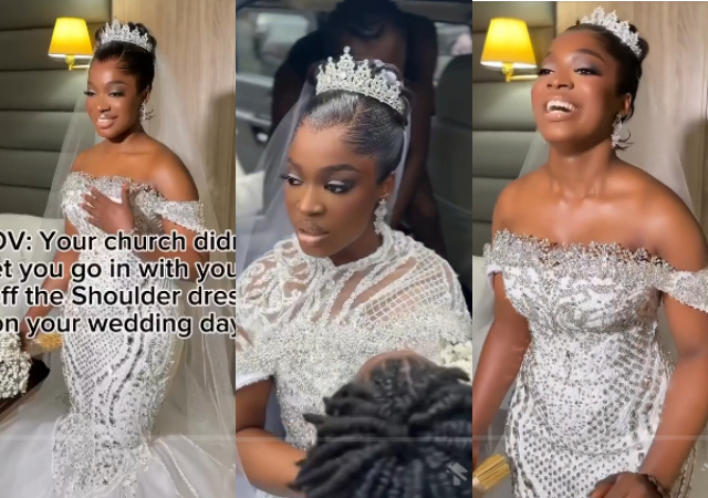 The makeover video of a Nigerian bride’s wedding dress after her church denied her admittance owing to her off-the-shoulder gown has piqued the interest of many online.