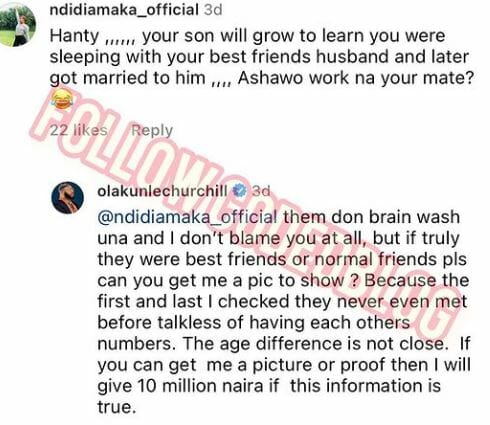 Furthermore, Olakunle Churchill made a promise to the netizen that he would give her N10 million if she could provide evidence that Tonto Dikeh and Rosy Meurer were best friends.