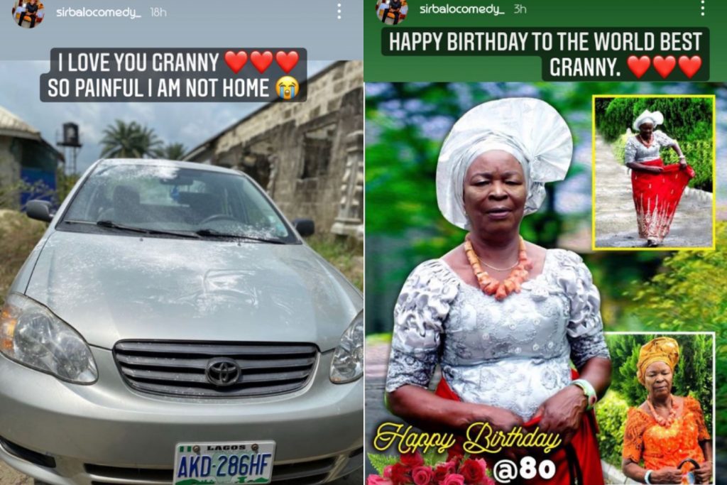 Nigerian comedian, Timothy Obotuke better known as Sirbalo has put up a rare display by gifting his grandmother a car for her 80th birthday.Sirbalo Grandmother Car Birthday