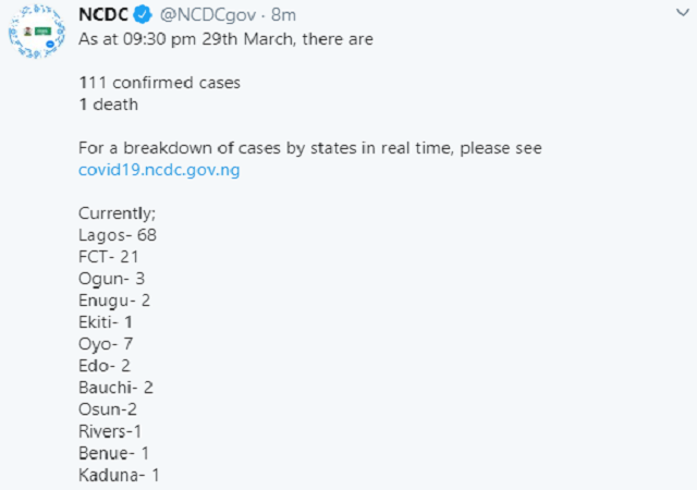 The Nigeria Center for Disease Control NCDC has confirmed 14 new cases of Coronavirus in Lagos and Abuja.