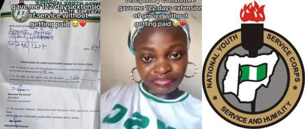 A female corps member has shared her frustration after the NYSC extended her service by 122 days without pay for missing biometric verifications.