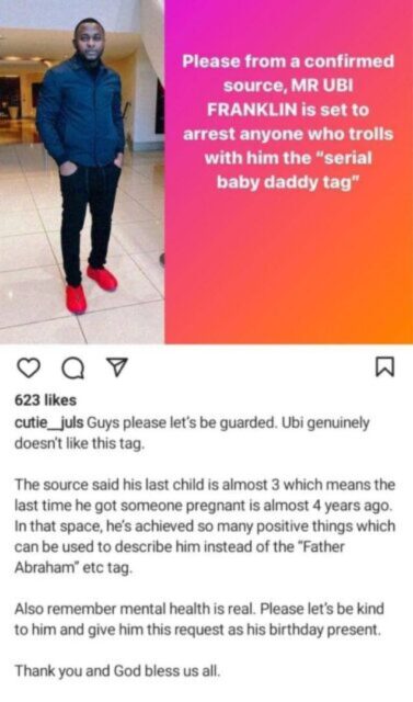 Meanwhile Ubi Franklin has been reported to have threatened to arrest anyone who tags him with the ‘father Abraham or serial baby daddy’ tag as he’s not happy with that.