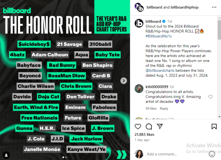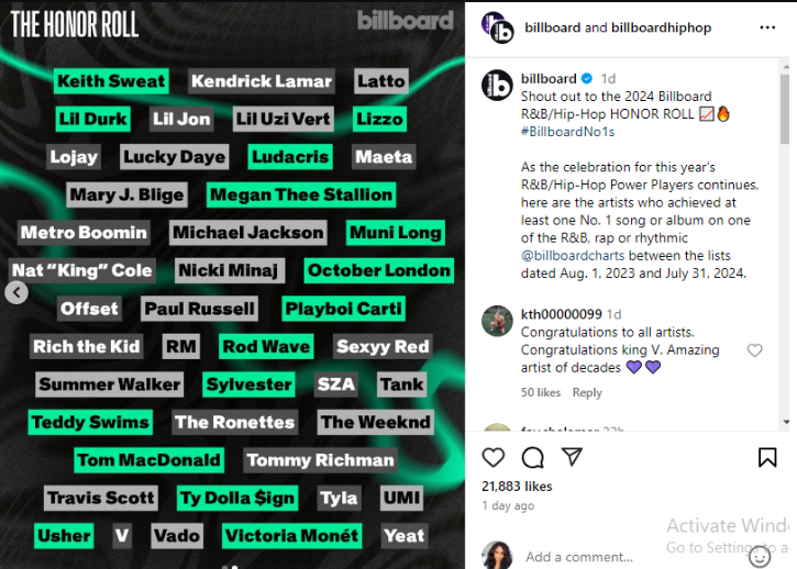 Their track has been featured on the Billboard Honour Roll, which highlights exceptional records in R&B and Hip Hop from August 1, 2023, to July 31, 2024.