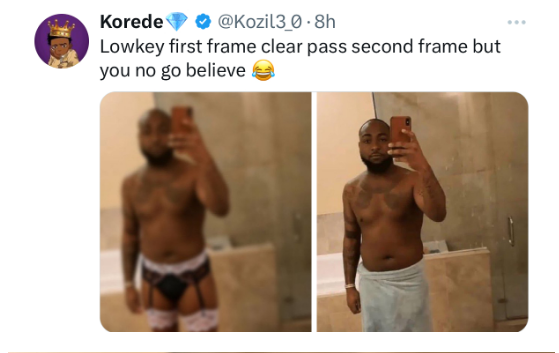 The original picture showed Davido taking a bathroom selfie in front of a mirror, wearing a towel around his waist.