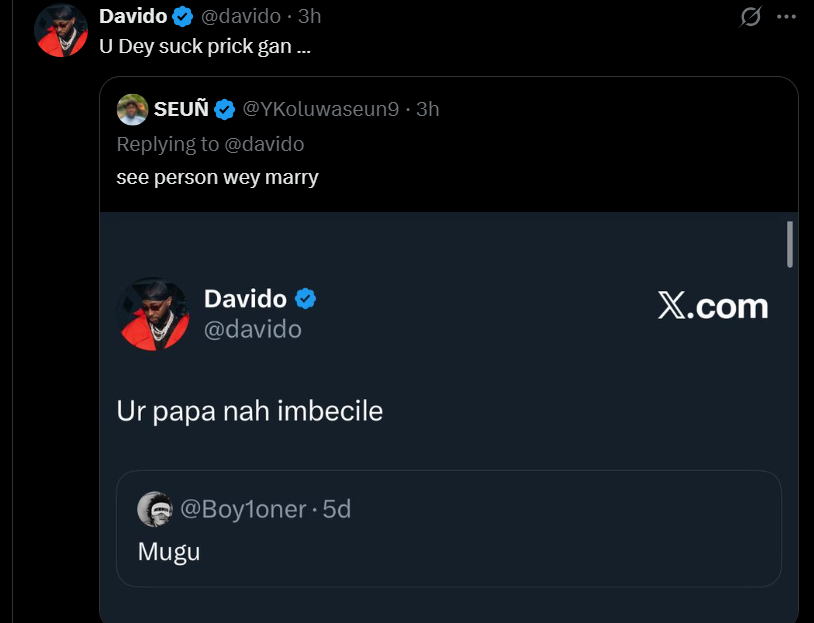 • The clash began when users posted jabs, prompting Davido to fire back with unfiltered insults, including direct replies that quickly went viral, drawing thousands of likes, reposts, and comments.