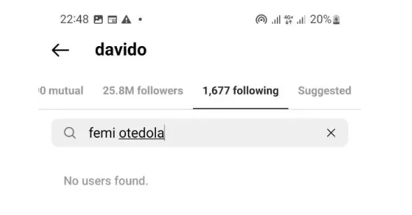 Further reports claimed Davido allegedly unfollows Late Ifeanyi IG account, DJ Cuppy and Femi Otedola.