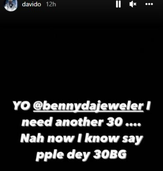 Yo @bennydajeweler I need another 30… Nah now I know say pple dey 30BG