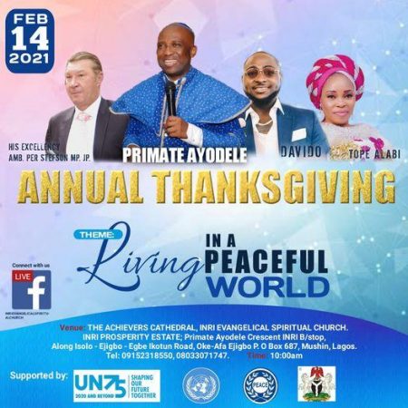 As seen in an upcoming event of Primate Ayodele’s ministry at the Achievers Cathedral, INRI Evangelical Spiritual Church in Lagos, Davido will be hosted as a performer under the roof of a religious gathering.