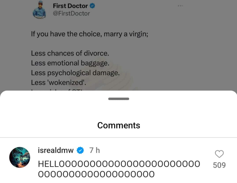 Davido’s logistics manager, Isreal DMW, reacted to a doctor’s post about why men should marry virgins.