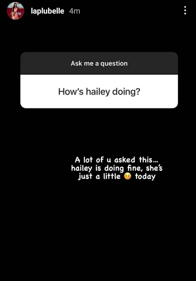 On her Instagram story, the young lady replied some of the questions including one that was about her daughter, Hailey Adeleke’s wellbeing.
