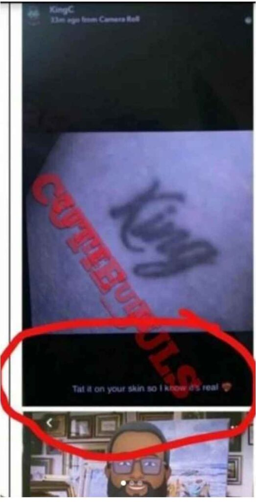 A screenshot was shared where the man allegedly requested that Chioma tats the word ‘King’ on her skin as a confirmation that what they share is real.