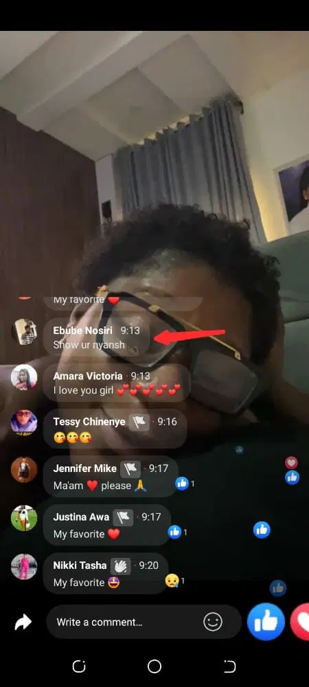 However, in the course of the convo with her fans, a Facebook user identified as Ebube Nosiri requested to see her backside. The user wrote: “Show ur nyansh.”