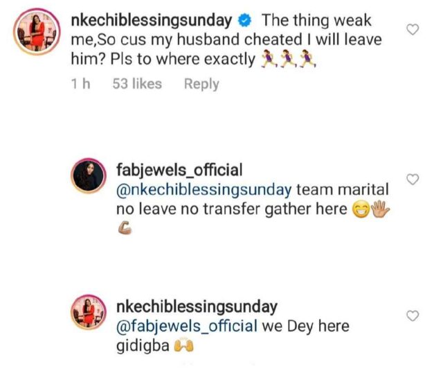 Falegan accused Nkechi of being a lesbian. Nkechi accused him of being broke and performing poorly segxwally. She said he can’t last more than a few seconds in bed and she uses sex toys to satisfy herself.