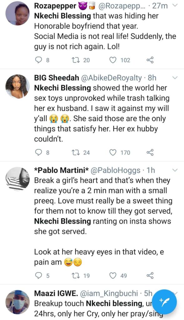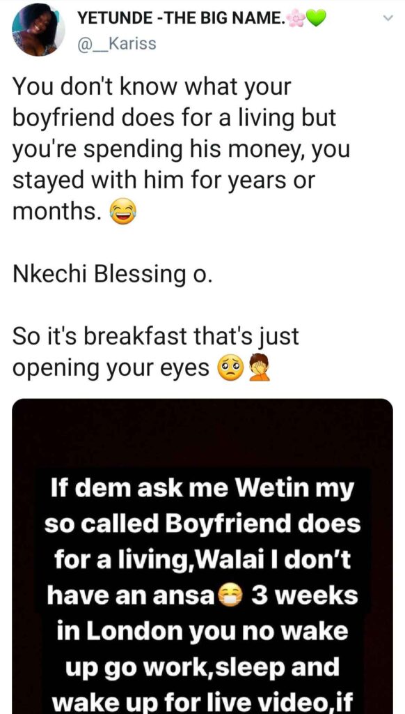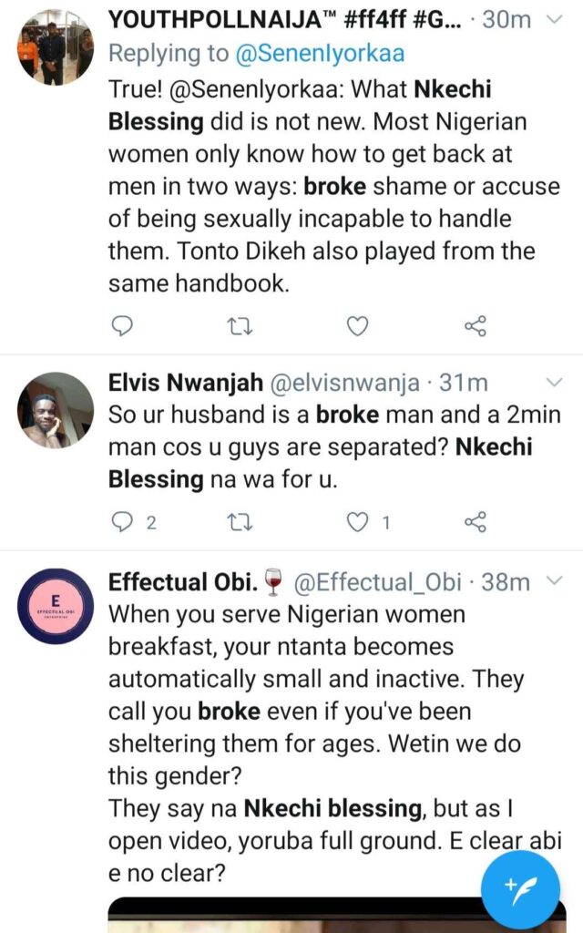 “Nkechi Blessing don forget wetin her mama talk?” One Twitter user wrote after the couple took to Instagram Live to call each other out following the end of their relationship.