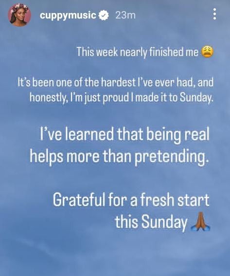 Nigerian disc jockey and music personality, Florence Otedola, widely known as DJ Cuppy, has opened up about going through an incredibly difficult period.