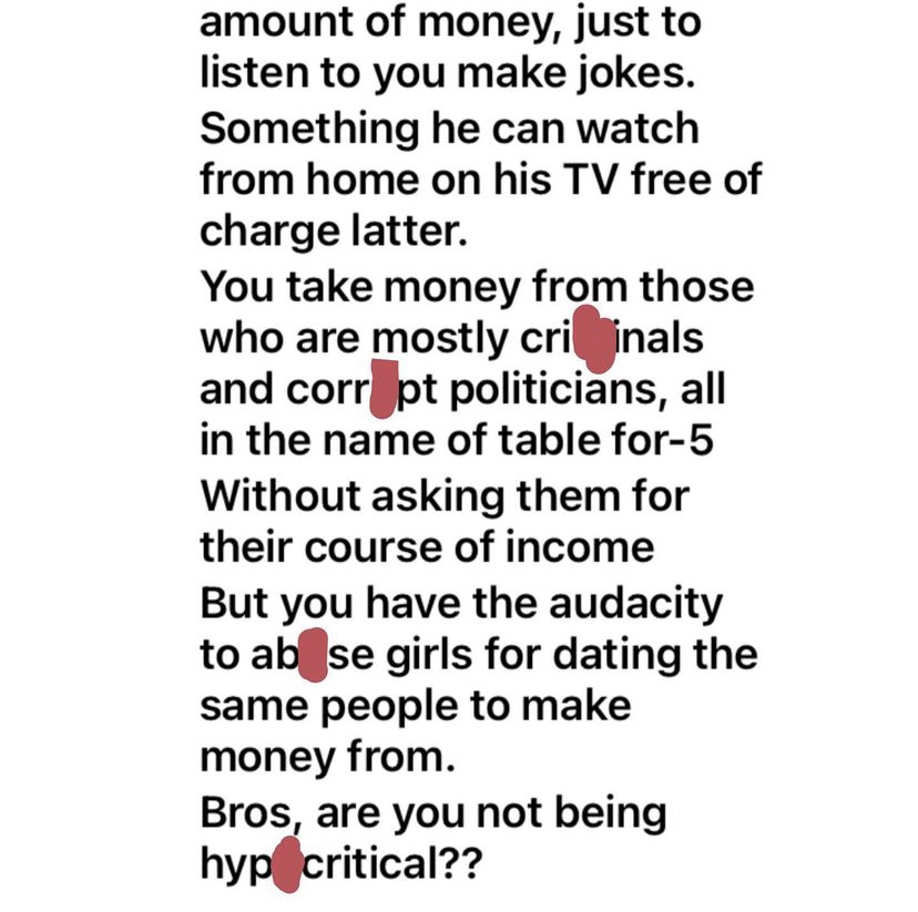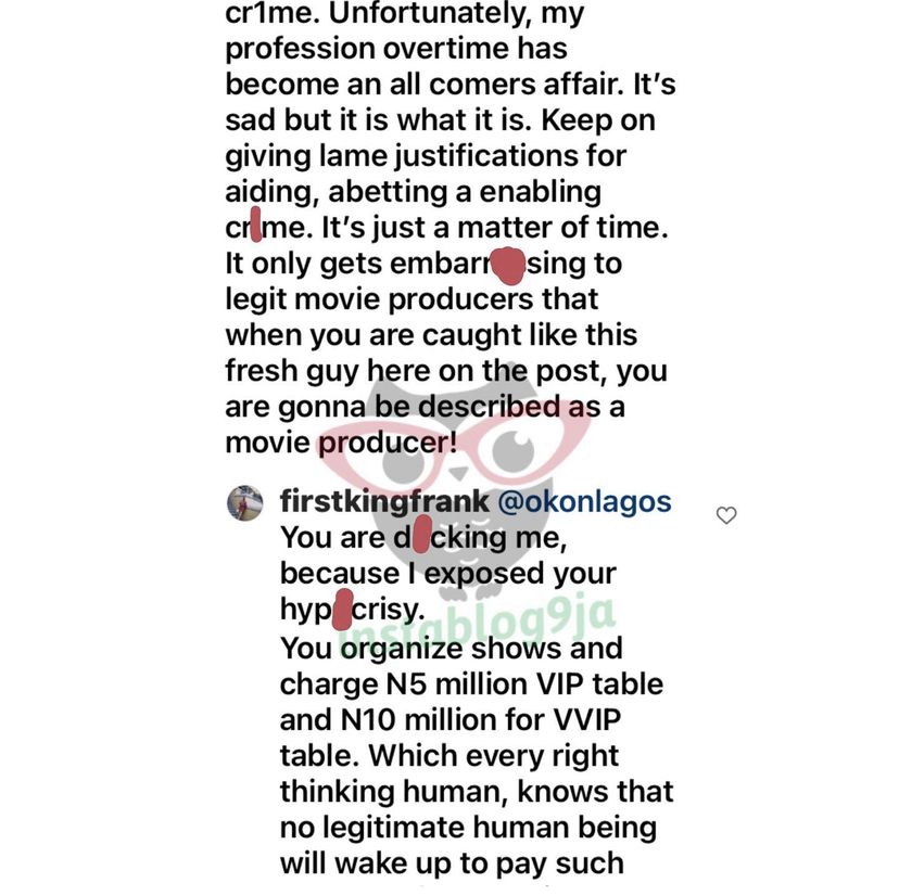 Frank Ufomadu went on to note that organizing shows with 5m and 10m for a table of five for VIP and VVIP’s respectively, and not confirming if those on the table have a legitimate source of income is enough to be tagged a ‘partner in crime’.