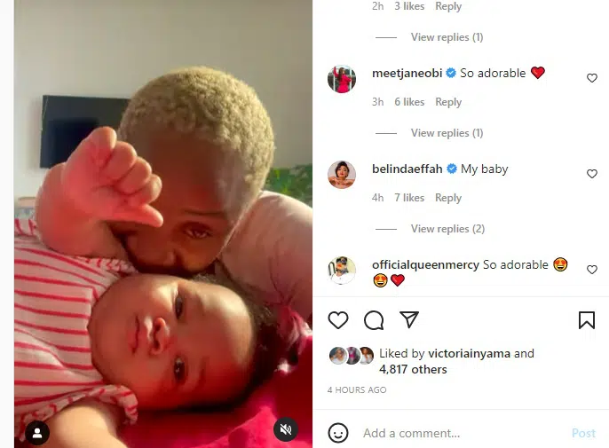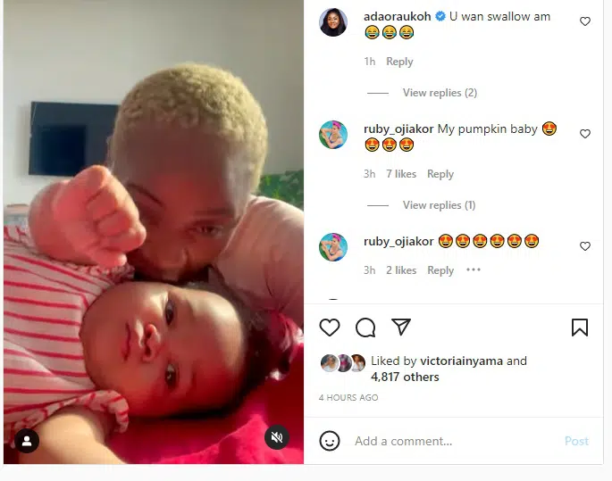 The video stirred up reactions, and one of her colleagues, Adaora Ukoh took to the comment section to ask her if she wants to swallow her baby. “U wan swallow am”, she asked.