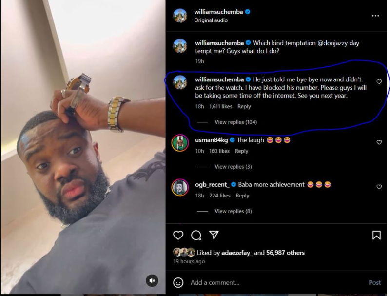 - Recall that William Uchemba posted about his attempt to steal Don Jazzy’s Richard Mille Wrist Watch worth N646M.