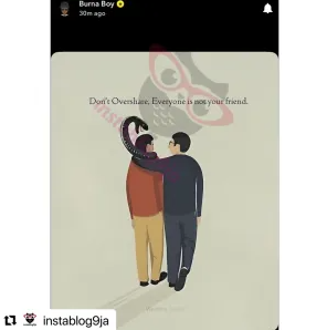 • Burna Boy suggests that it’s important not to overshare information as not everyone is your friend.