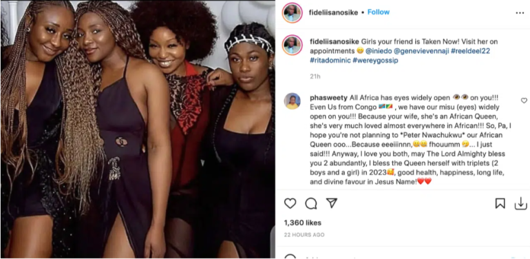 Another user phasweety wrote; ‘All Africa has eyes widely open 👁👁 on you!!! Even Us from Congo 🇨🇩🇨🇬 , we have our misu (eyes) widely open on you!!! Because your wife, she’s an African Queen, she’s very much loved almost everywhere in African!!! So, Pa, I hope you’re not planning to Peter Nwachukwu our African Queen ooo…Because eeeiiinnn,🤐🤐 fhouumm 🤧… I just said!!! Anyway, I love you both, may The Lord Almighty bless you 2 abundantly, I bless the Queen herself with triplets (2 boys and a girl) in 2023🥰, good health, happiness, long life, and divine favour in Jesus Name!❤️❤️’