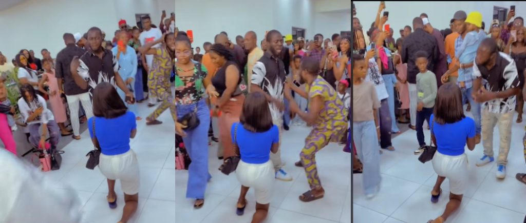 The dramatic scene, captured in a viral TikTok video posted by user @cherish_119, shows the woman kneeling down and presenting a ring to her partner, hoping he would say yes.