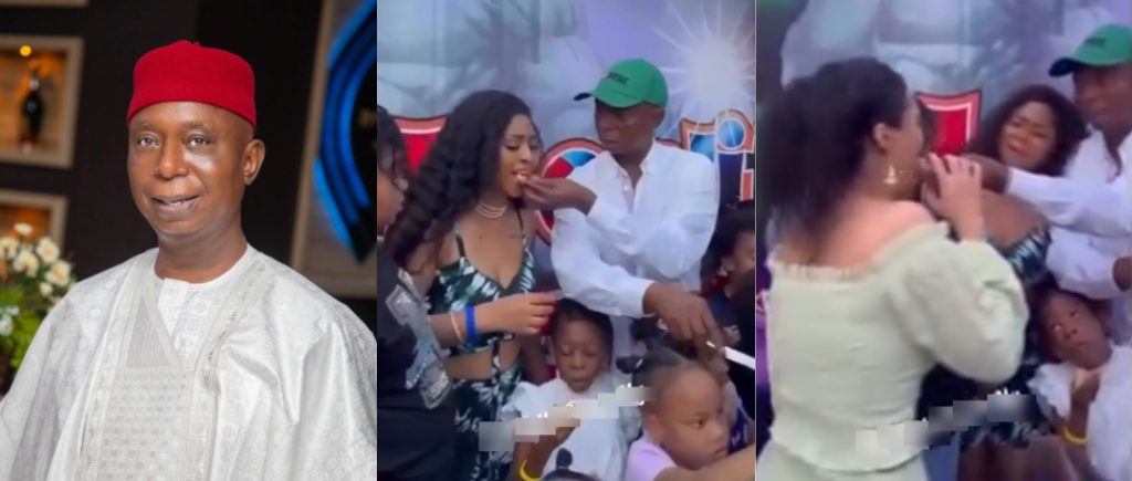 Fans have taken to social media to share mixed reactions after a video surfaced from Regina Daniels’ son’s recent birthday celebration, showcasing a moment between her husband, Senator Ned Nwoko, and his two wives.
