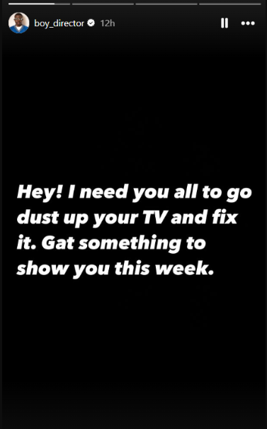 “Hey, I need you all to go and dust up your TV and fix it. Got something to show you this week,” he wrote.