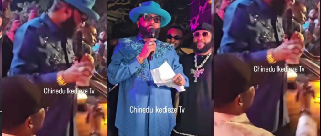 • E-Money surprised actor Chinedu Ikedieze with a new SUV at his birthday party, continuing his yearly tradition of giving expensive gifts.
