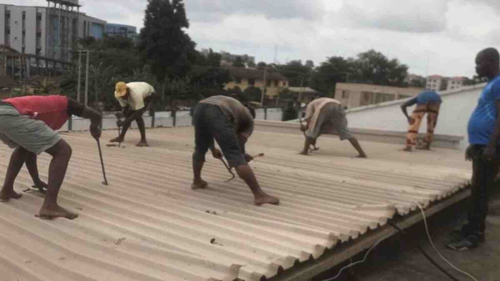 In spite of the heavy presence of security agents, several artisans were seen removing the roof of the complex as at 3PM on Thursday.