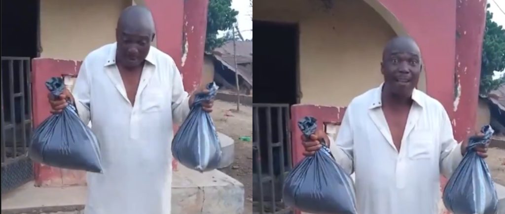 In a video circulating on social media, the man showed a small bag containing rice and beans, claiming it was meant to be shared among about 50 people in his community.