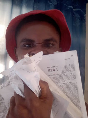 Udummiri has released new photos of himself destroying the bible yet again and this time, he says it’s because a Reverend Father is destroying shrines at Ekwulobia.