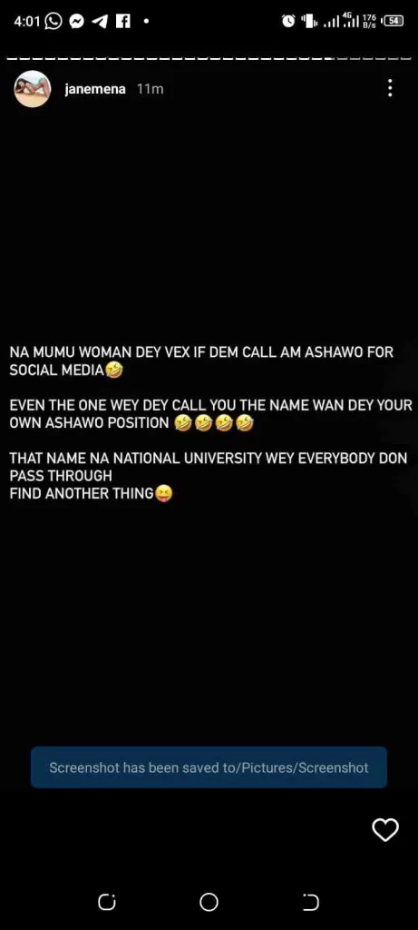 Continuing, Janemena also slammed women who troll other ladies by tagging them as prostitutes.