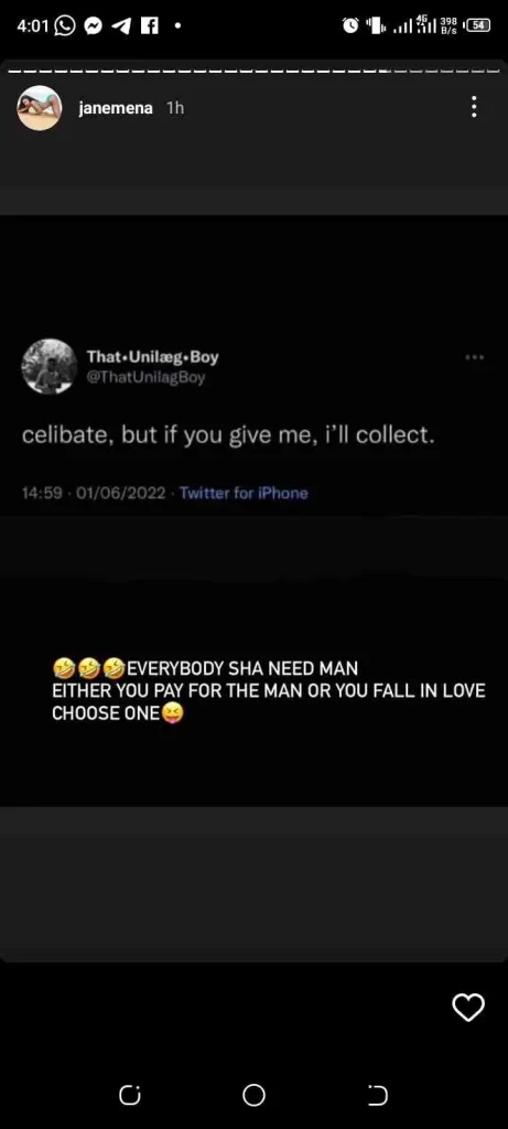 However A few days after Tonto Dikeh made this assertion, Janemena took to her Instagram stories to share some cryptic notes.