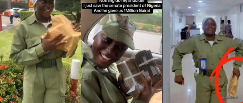 Excited Corper Celebrates Alleged ₦1M Gift from ‘Senate President’