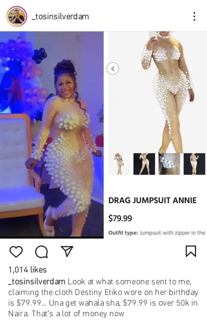 It was alleged that the outfit cost $79.99 which is over 50,000 in Nigeria.